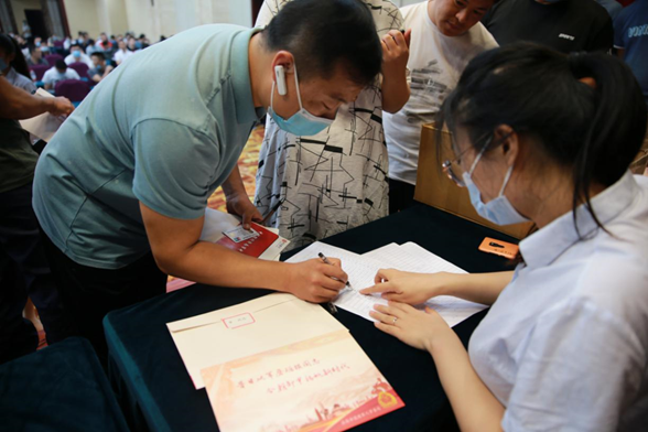 开班仪式结束后,现场发放社保卡和待安置期间生活费补助卡。