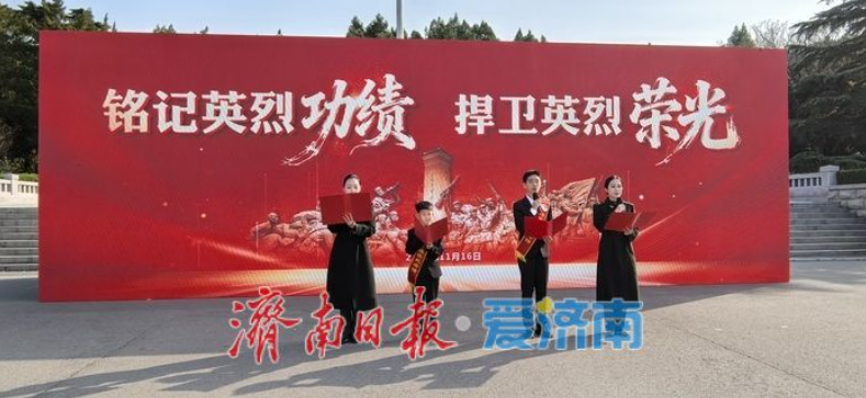 11月16日,以“铭记英烈功绩,捍卫英烈荣光”为主题的济南市《中华人民共和国英雄烈士保护法》宣传月活动在济南革命烈士陵园英雄广场举行。副市长王茂祯出席活动并讲话。