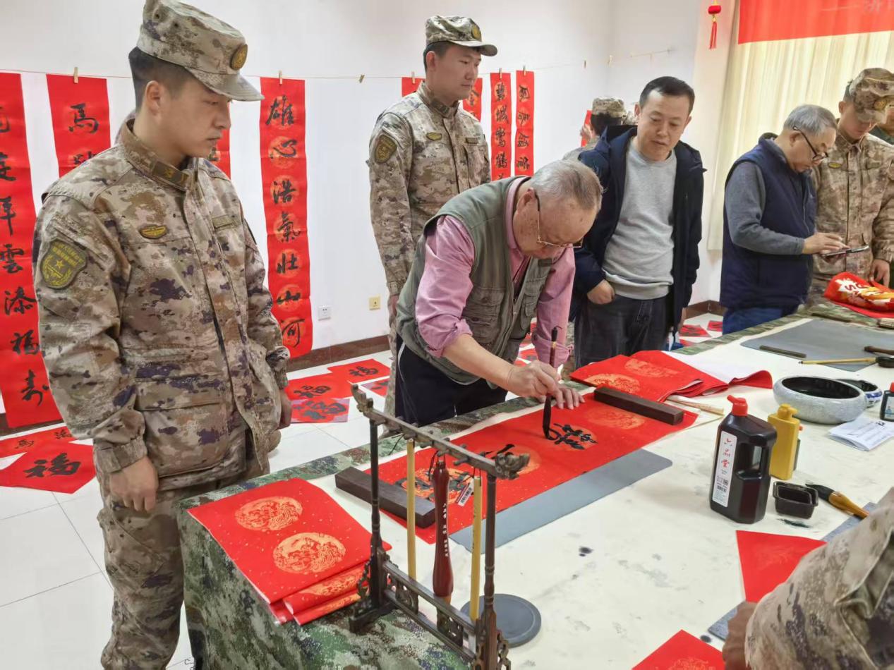 活动现场墨香阵阵、年味浓浓。军休干部们精神饱满、意气风发,挥毫泼墨、笔走龙蛇,将强军情怀、新春祝愿融入一笔一画之中。大家围绕强军使命、新春吉祥等主题,现场创作一幅幅笔力遒劲、寓意美好的春联与福字,既饱含着对军旅岁月的深情眷恋,也承载着对现役官兵的殷切期许与美好祝福。