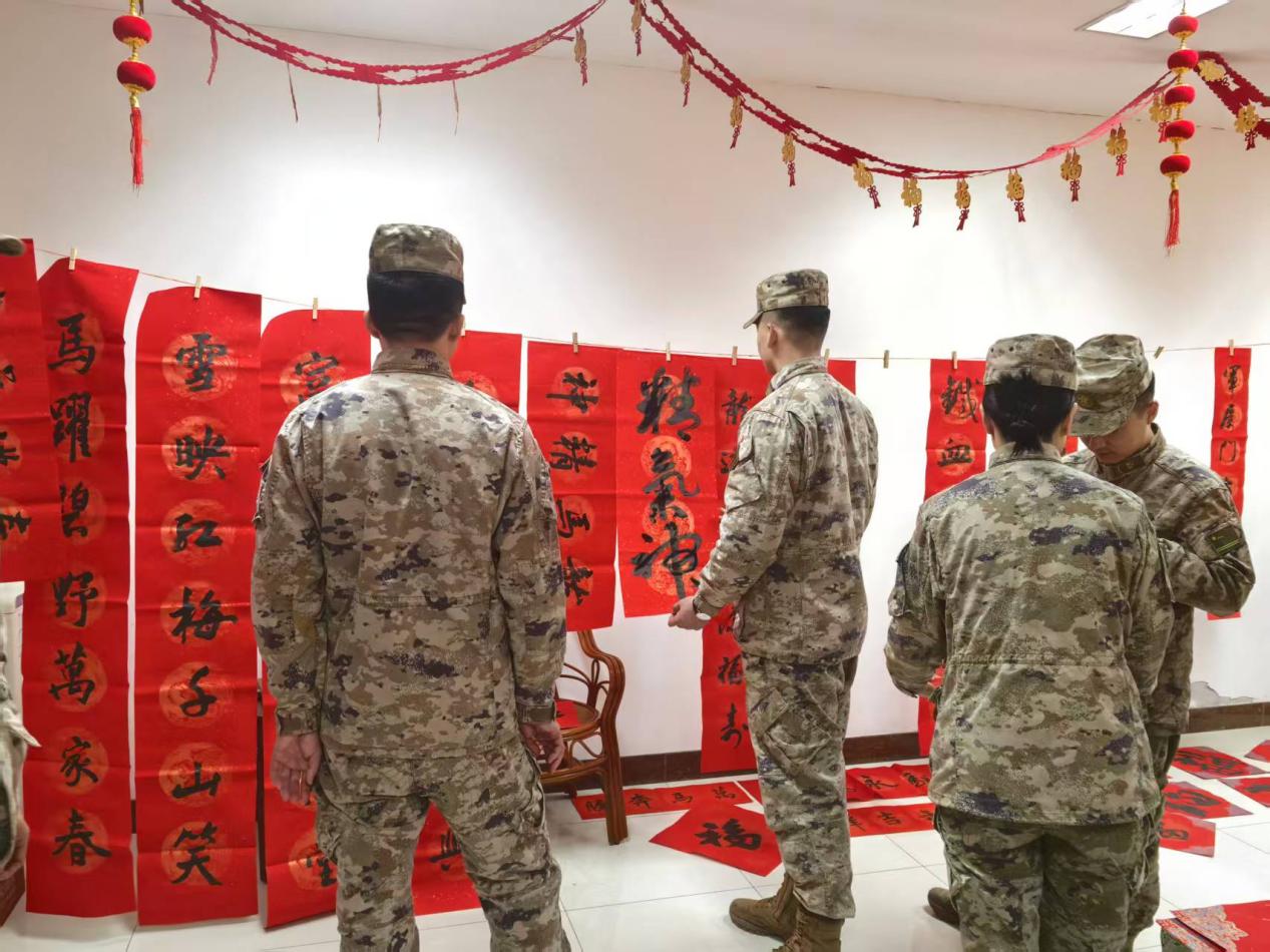 新春将至,暖意盈营。为弘扬拥军优属优良传统,深化军地鱼水深情,2月9日下午,济南市军休中心服务四部组织军休干部书法爱好者,走进960医院开展“翰墨传情颂强军,新春送福暖军营”新春送福活动,为960医院官兵送上诚挚的新春祝福。
