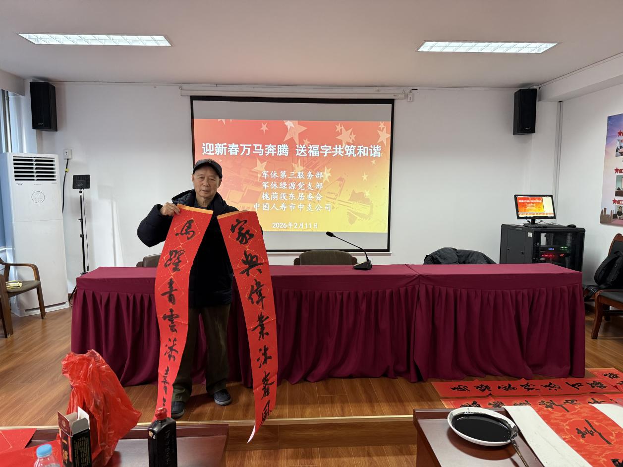 新春将至,年味渐浓。2月11日上午,军休绿源党支部的活动室内墨香四溢,红纸铺展,一场充满温情与传统文化气息的“迎新春、写春联、送祝福”活动热烈举行。军休干部齐聚一堂,挥毫泼墨,将浓浓的年味和美好的祝愿倾注于笔端,为即将到来的马年增添了浓厚的文化气息。