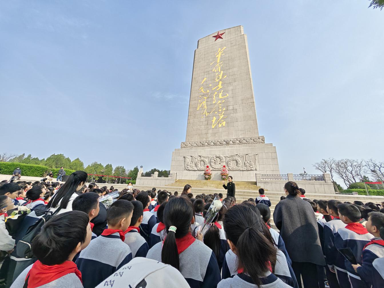 革命烈士纪念塔旁,英烈讲解员向孩子们介绍革命烈士纪念塔鲜为人知的历史故事,“这座塔到底是什么时候建起来的?当年纪念塔的题词原件存放在哪里?这座山又为什么取名‘英雄山’?”孩子们带着疑问静静聆听,第一次全面了解这段尘封的往事。