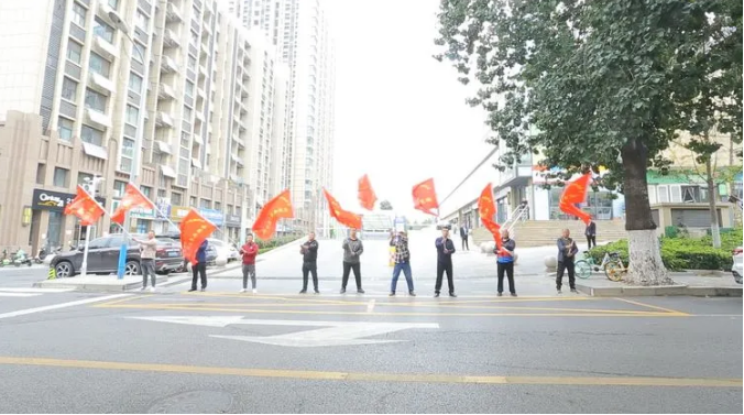 鲜艳的军旗在灿烂的朝霞中高高飘扬;嘹亮的军歌响彻在甸柳新村街道辖区。