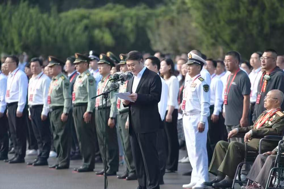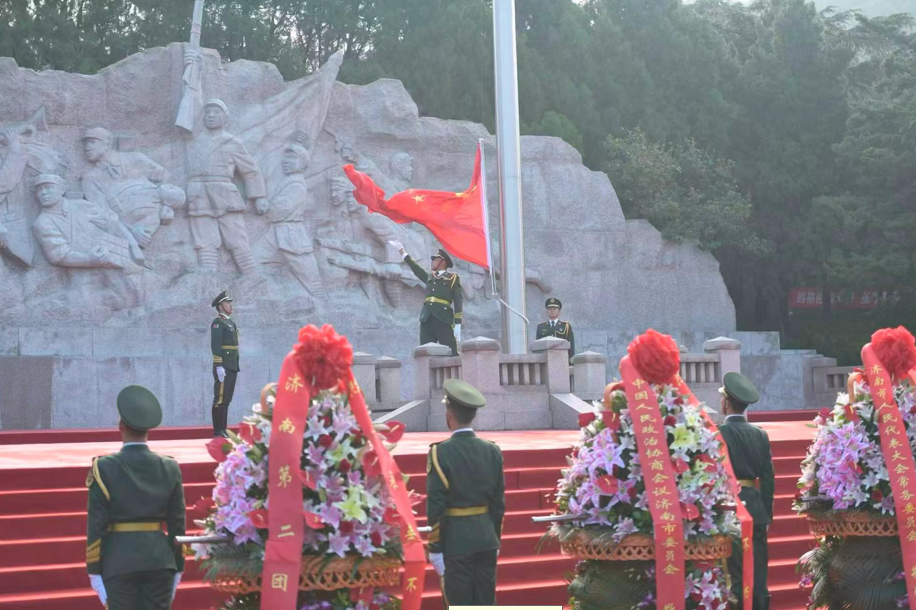 上午8时,烈属从酒店出发,交警铁骑护卫队全程护送,彰显尊重,以城之名,致敬英烈。9时,仪式正式开始,济南革命烈士陵园英雄广场庄严肃穆,全体人员齐声高唱中华人民共和国国歌,激昂的旋律在苍松翠柏间回荡。国歌唱毕,全场肃立,向济南战役牺牲的革命烈士默哀致敬。济南市委副书记杨峰致悼念词,深切缅怀革命先烈的丰功伟绩,表达全市人民继承先烈遗志,为加快建设“强新优富美高”新时代社会主义现代化强省会而努力奋斗的坚定决心。少先队员代表献唱《我们是共产主义接班人》,展现了新时代传承红色薪火的远大理想和昂扬风貌。
