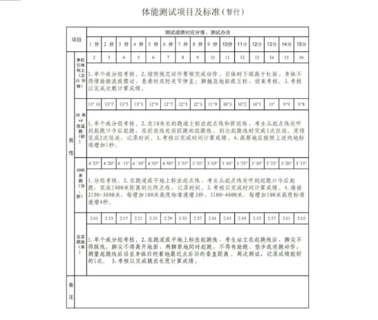 主要考核内容为单杠引体向上、10米×4折返跑、1000米跑、立定跳远等,心理测试主要考察招录对象的心理承受和自我调节能力,采用消防员招录心理测查系统,由系统自动评定测查结果。
